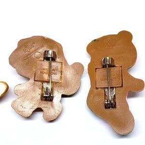 Vintage RUSS Gibson Christmas Teddy Bear Pin Lot Set x3 Stocking Santa Skates