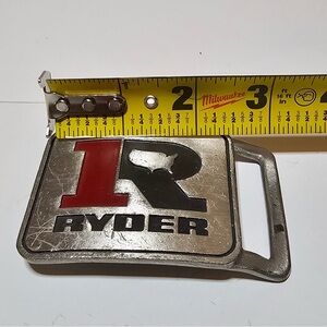 Vintage RYDER Pewter Belt Buckle By Michelin Squared With Red Inlay Flawed slightly bent due to pewter being malleable shows signs of wear such as scratches sold as is see pictures for reference