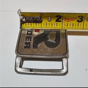 Vintage RYDER Pewter Belt Buckle By Michelin Squared With Red Inlay Flawed