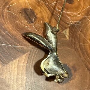 Features a red eye and pearl accents. It’s missing one pearl as seen in the photos. At one point in its life maybe it had more enamel on the ears?? Amazing vintage piece for your collection 🐇🐇🐇