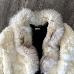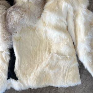 Soft cream rabbit fur jacket. . Will need someone who can give it some loving. Some holes in the shoulders and sleeves. Vintage.