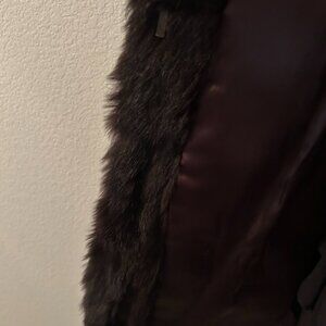 This authentic beautiful jacket is genuine rabbit fur, Princess Cut, is fully satin lined, and has 3 hook and eye clasps.