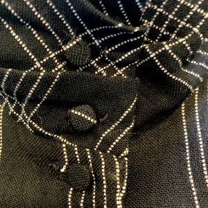 This 80s Rabbit Rabbit Rabbit Dress still makes a statement.This is a shirtwaist dress with a whole fun look.The covered buttons open to a waist that is elastic making it easy to put on & comfortable. The wide sleeves drape nicely. The pleated collar buttons up to a turtleneck, can be turned down for a little collar, or worn open.The contrasting belt can be tied many ways or a black belt can be worn with it. Skirt is 25”long. Fabric tag missing but is a Ramie blend. Very soft.