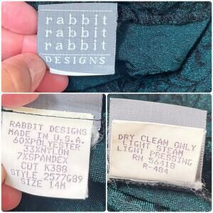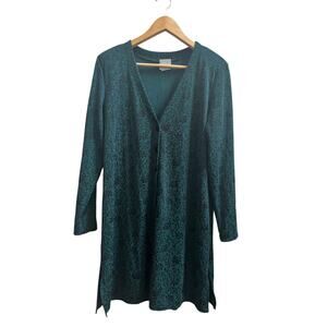 Vintage Rabbit Rabbit Rabbit Green Jacquard V Neck Button Down Tunic 14M Boho