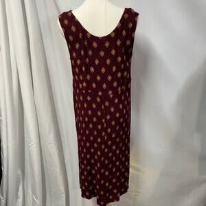 Vintage Rabbit Rabbit Rabbit Rayon Slip Dress Womens M USA Made Maroon Gold
