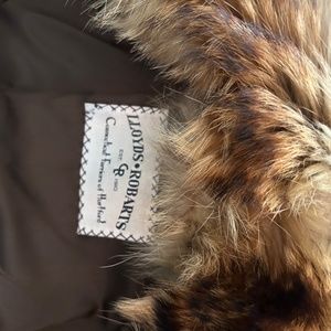 Lloyds Robarts floor length raccoon fur coat which was worn by a petite size 4-6 woman who was 5 feet 1 inch tall. 50-51 inches from pit to pit in back. 53 inches from top of collar to bottom of coat. Excellent condition!