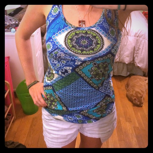 Patterned racerback tank with vintage patterns that are super colorful & eye catching! Very comfortable material. NWOT