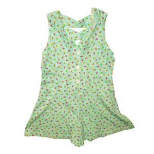 Vintage Rachel’s Kids Girls Floral Gingham Romper S 7/8 Green Criss Cross Back