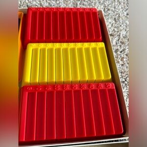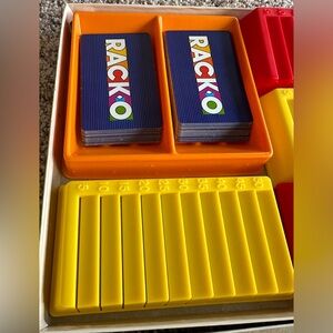 Classic Rack-O card game for 2 to 4 players. Includes colorful card racks. All pieces are here. 50 cards.