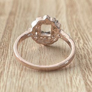 Vintage Radiant Floral White Sapphire Halo Ring - Rose Gold Plated