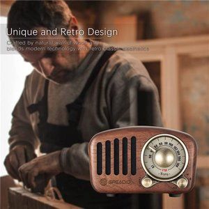 🧿♪【Let's Go Back To the Old Time】♪ This vintage radio speaker was crafted by natural walnut wood and blends modern technology with retro classic aesthetics, combines the latest and best digital audio tech with a 1950s retro vibe. We can feel like back into the golden age of music in 1950s, enjoying a soothing moment in today's busy life. With the advanced Bluetooth 5.0 technology, this retro bluetooth speaker could be connected with your smart equipment in less than one second.