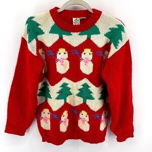 Vintage Radishes & Roses acrylic snowman Christmas tree knit crewneck sweater S