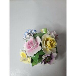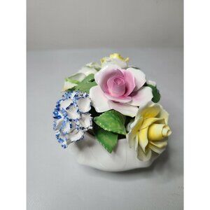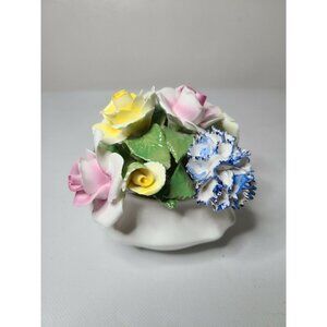 Vintage Radnor Bone China Ceramic 3D Roses Flower Bouquet In White Pot Figurine