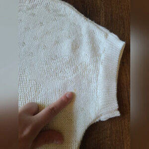 This piece is so cute. It is a knit fabric and has areas of sheerness.