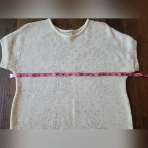See photos for approximate measurements. Fits more like a Medium in today's sizing