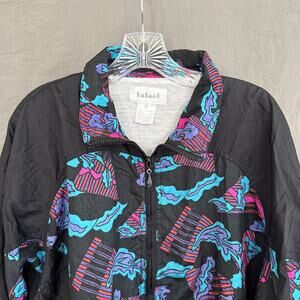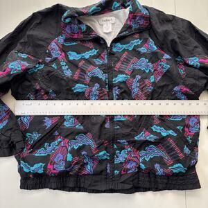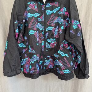 Vintage‎ Rafael Windbreaker Jacket Black Multi Abstract Print Rave Y2K Sz Medium