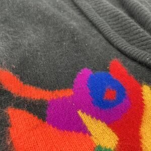 Vintage Rafaella Angora Cardigan Womens Size L Floral Graphic Black Vibrant 80s