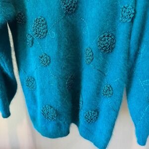 Vintage Rafaella Angora Rabbit Hair Embroidered Floral Sweater Turquoise S