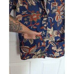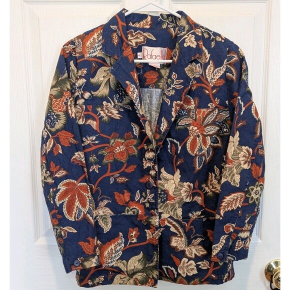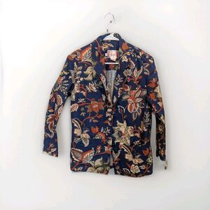 Vintage Rafaella Petites Blazer Size 4 Paisley Unlined Navy With Floral Print
