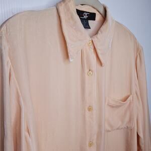 Vintage Rafaella Velvet Button Down Top Small Blush Fairy Silk Rayon Holiday