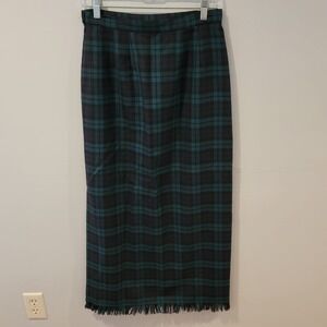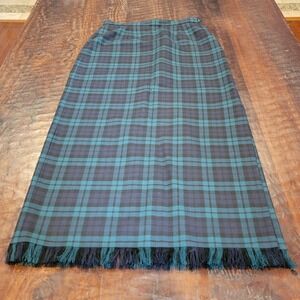Vintage Rafaella Wool Maxi Skirt Tartan Plaid Fringe Hem Pencil Women's Size 6
