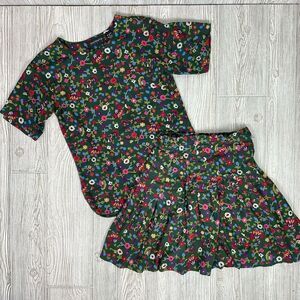 Vintage Raiferty Women's Outfit Set Short Sleeve Top Small, Skirt 7/8 Floral Green