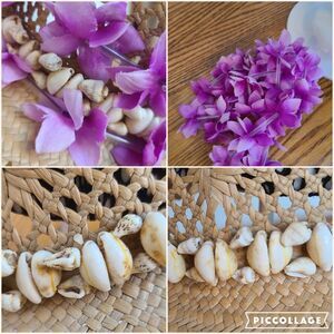 Shell detail for hat band; includes faux floral and straw lei for alternate band