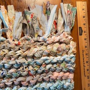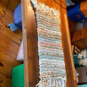 Purchased at a Vintage-Antique Craft Fair-made of Cotton recycled fabrics, hand hooked-it is perfectly clean & never used. 40 inches long by 18 inches wide. Great accent for any room. Notice the frayed edge rag style! Nice gift also!