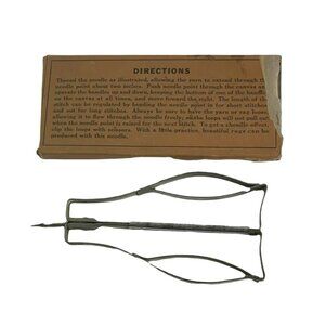 Vintage Betsey Ross Rag Rug Shuttle Needle Punch Tool No 5 for Yarn and Narrow Rags on Canvas or Rug Patterns. Great vintage item in original box. 7.5" long x 3" wide. There is some light corrosion on the metal and some damage to the box. Please see my photos.