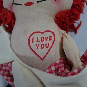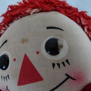 (D1) Vintage Raggedy Andy Doll. Preowned. One broken eye, stains and dirty. Shown in pictures. Tag cut off. Missing hat and tie.