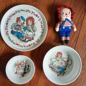 Vintage Raggedy Ann & Andy Dishes & Doll 1960s 70s