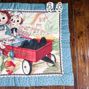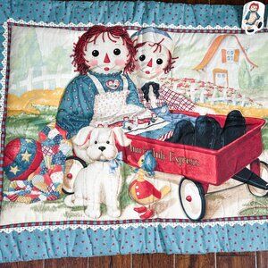 Vintage Raggedy Ann & Andy Express Wagon Comforter Baby Crib Blanket 31" x 42"