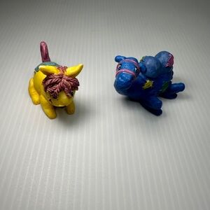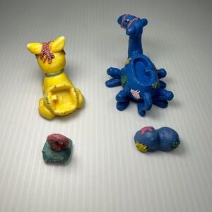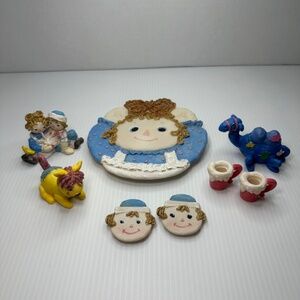 This vintage Raggedy Ann miniature tea set is a must-have for any collector or fan of the beloved children's toy. Made by Popular Imports in 1997, this full 10 piece set is a great addition to any collection. The set includes a Raggedy Ann & Andy sharing a drink, 2 small plates, 2 cups, a camel with removable humps, a dog with removable tail piece and a large plate. The set is suitable for children aged four and up, as well as collectors of all ages. The Raggedy Ann character family adds an extra touch of charm to this unique and rare find. Don't miss your chance to own this piece of vintage toy history!