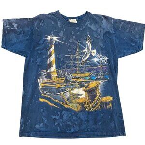 Vintage Ragtops Sportswear Tshirt Lighthouse Nautical Marbled Tie Dye USA Made M