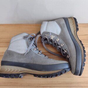 Vintage Raichle Gray Leather Boots Lace Up Hiking Mountaineering Womens 9 M READ