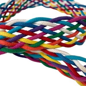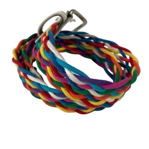 This is an outstanding vintage statement belt! Could be styled with any color of the rainbow, because it is an actual rainbow of braided cotton! Perfect for the upcoming Pride celebrations to stand out with something vintage! Please see all photographs.