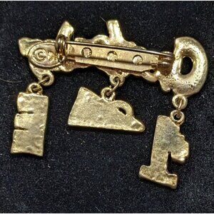 Vintage Rainbow Cheerleader Dangling Charm Brooch Signed DM