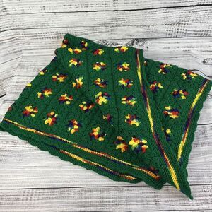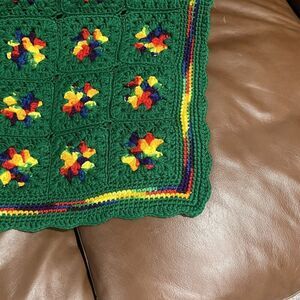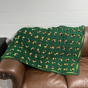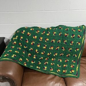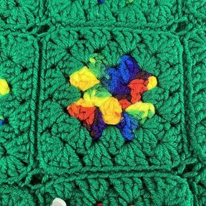Vintage Rainbow Granny Square Thick Afghan Blanket Crochet 59" x 47" Roseanne