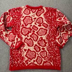 Vintage Rainbow Ridge Animal Print Sweater Women's Small Red Knit Crew Neck