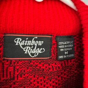 Vintage Rainbow Ridge Pixelated Floral Rose Sweater in women's Size Medium. Red & Black. Crewneck, long sleeves, 100% acrylic. Sweater is in very good used condition with no flaws or stains and minimal wash wear. Please see close-up pictures for condition details. Cozy. Grandma sweater. Grannycore. Cottagecore. Bookish. Early 1990s fashion. Modest neckline. Pit to pit measures approx 19 in across & length from top of front shoulder to bottom hem measures approx 24.5 in.