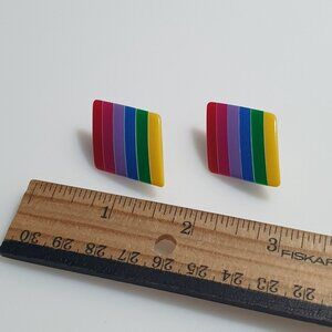 Vintage Rainbow Striped Diamond Clip On Earrings Acrylic Jewelry Retro 1980s