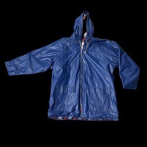 Vintage Raincoat Misty Harbor XL Blue Rain Slicker Flannel Lining 80s Taiwan
