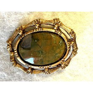 Vintage Rainforest Jasper Brooch/Pendant, 2” gold tone finish