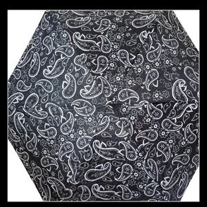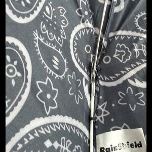This Vintage Rainshield umbrella for women features a paisley floral print in black and white. It is made of 100% polyester and is an original piece from China. Perfect for any occasion, this stylish accessory adds a vintage touch to your outfit.