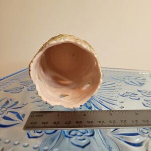 This piece is very rare & hard to find. It is a lovely Clover Vase made of Bisque Porcelain Pottery in Pink & Green.