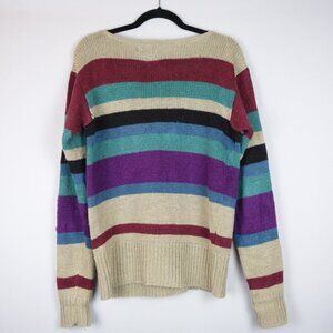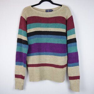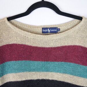 Vintage Ralph Lauren 100% Linen Multi-Stripe Knit Crewneck Sweater, Size Large