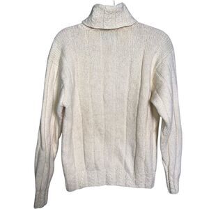 Vintage Ralph Lauren 100% Wool Cable Knit Turtleneck Sweater Ivory Cream Size S