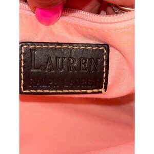 Vintage Ralph Lauren Beige Linen Handbag With Black Leather Trim
