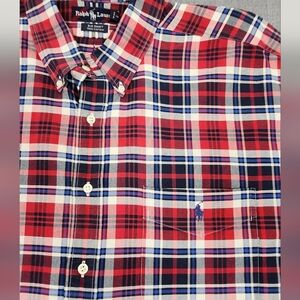 Great condition. No Flaws. Vintage Ralph Lauren Big Shirt Red White and Blue Plaid 100%Cotton Button Down Pocket Shirt XL