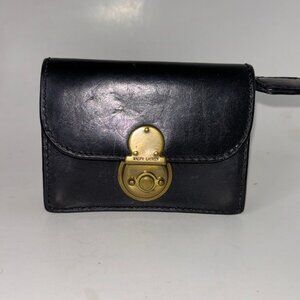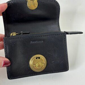 Vintage Ralph Lauren Black Leather Gusseted Locking Coin Wallet